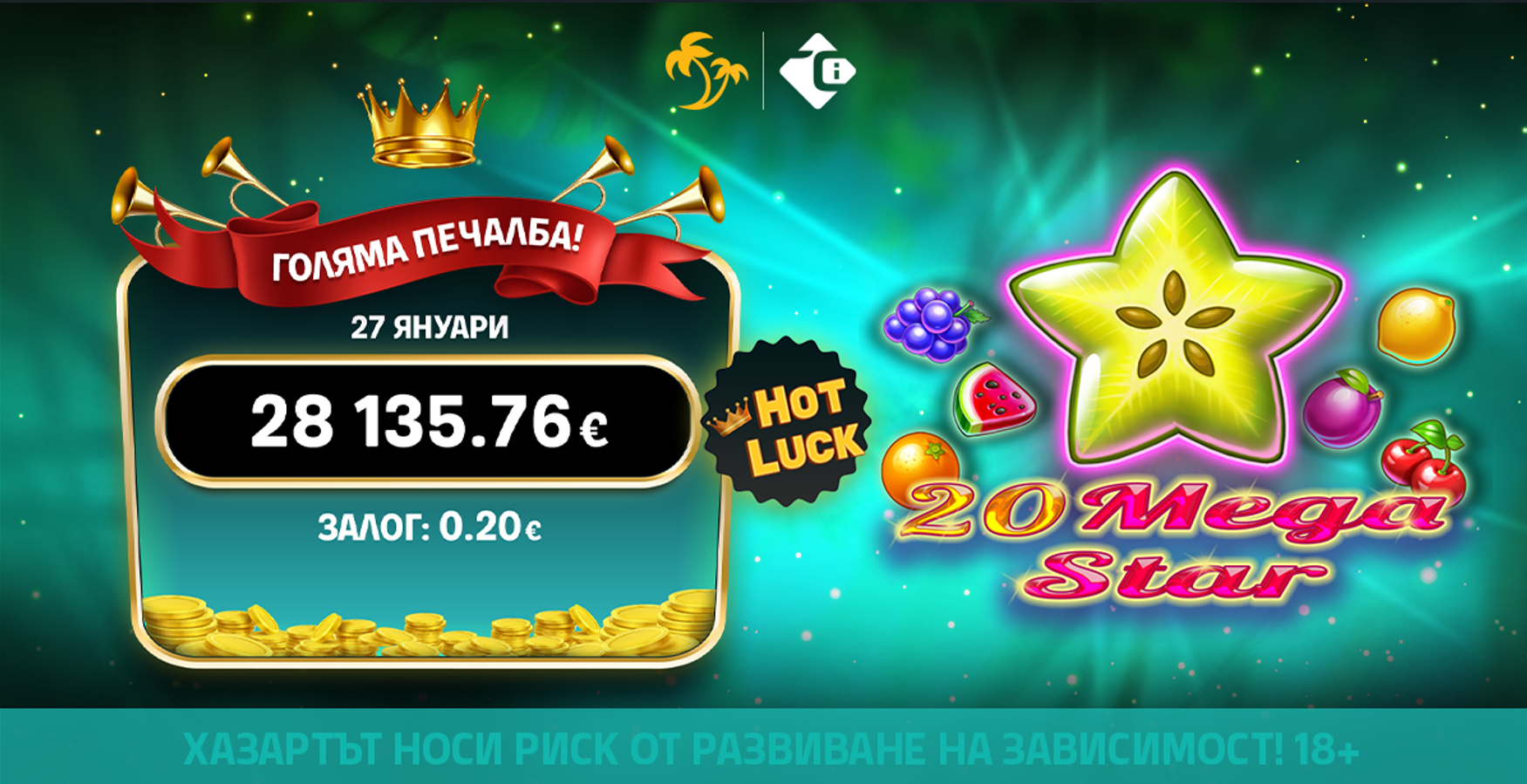 Начало ДжакпотиHot Luck Jackpot падна в онлайн казиното на Palms Bet! ТОП печалба с 20 Mega Star!