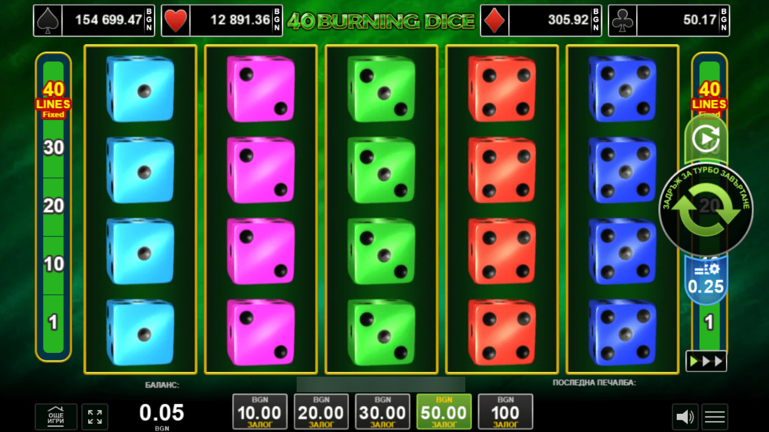 🎰 Сумата дойде с едно от най-разпознаваемите заглавия от Amusnet – 🎲40 Burning Dice🎲.