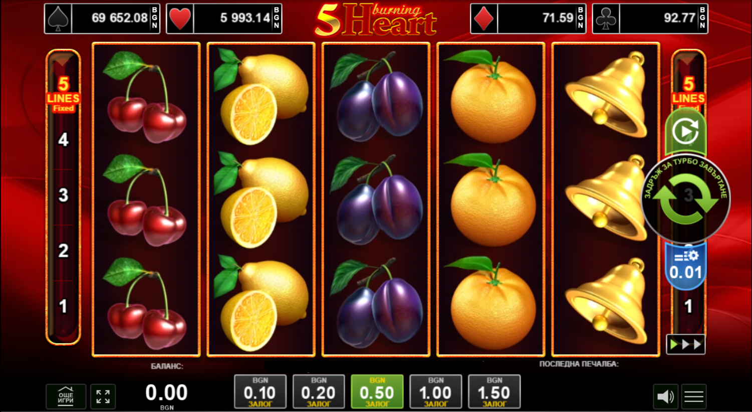 🎰 Печалбата падна в добре познатата и обичана слот игра 5 Burning Heart – хитово заглавие от Amusnet, което пленява с класически символи, гореща атмосфера и възможност за изключителни печалби! 🔥