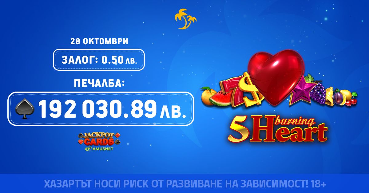 🌴 На 27 октомври в онлайн казиното на Palms Bet беше спечелен внушителена внушителна сума от Пиката на Jackpot Cards! ♠️ Късметлията успя да грабне невероятните 192 030.89 лв. само със залог от 0.50 лв.! 💥