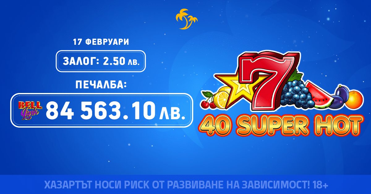 🔔 Печалбата стана възможна след като Bell Link джакпотът на EGT Digital падна в играта 40 Super Hot Bell Link. Заглавието е част от най-популярната Super Hot поредица на доставчика и предлага на играчите класическо слот преживяване и разнообразни възможности за печалба с помощта на бонуси и натрупващия се Bell Link Jackpot.