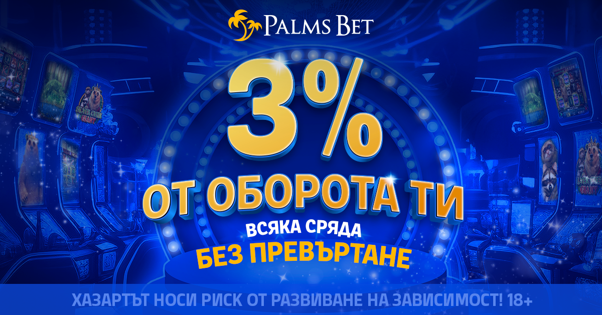 Начало Промоции3% от оборота ти – новото уникално предложение от Palms Bet
