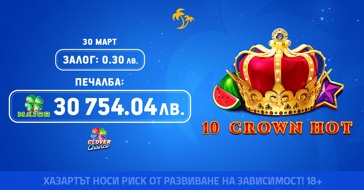 🚀 А както вече знаеш, 10 Crown Hot, както и още над 1200 хитови заглавия, те очакват на palmsbet.com! Там ще намериш и най-различни предложения и промоции, с които да направиш играта си още по-интересна!