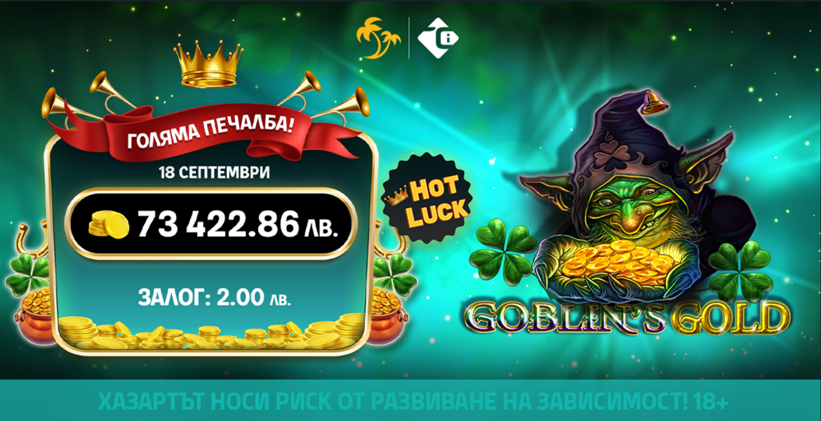 🎰 Печалбата дойде със слот играта Goblin’s Gold – атрактивно заглавие от CT Interactive, което пренася играчите в мистичния свят на гоблините и техните скрити съкровища. Със завладяваща атмосфера, ярки символи и бонус функции, играта предлага незабравими емоции и шанс за впечатляващи печалби! 💰