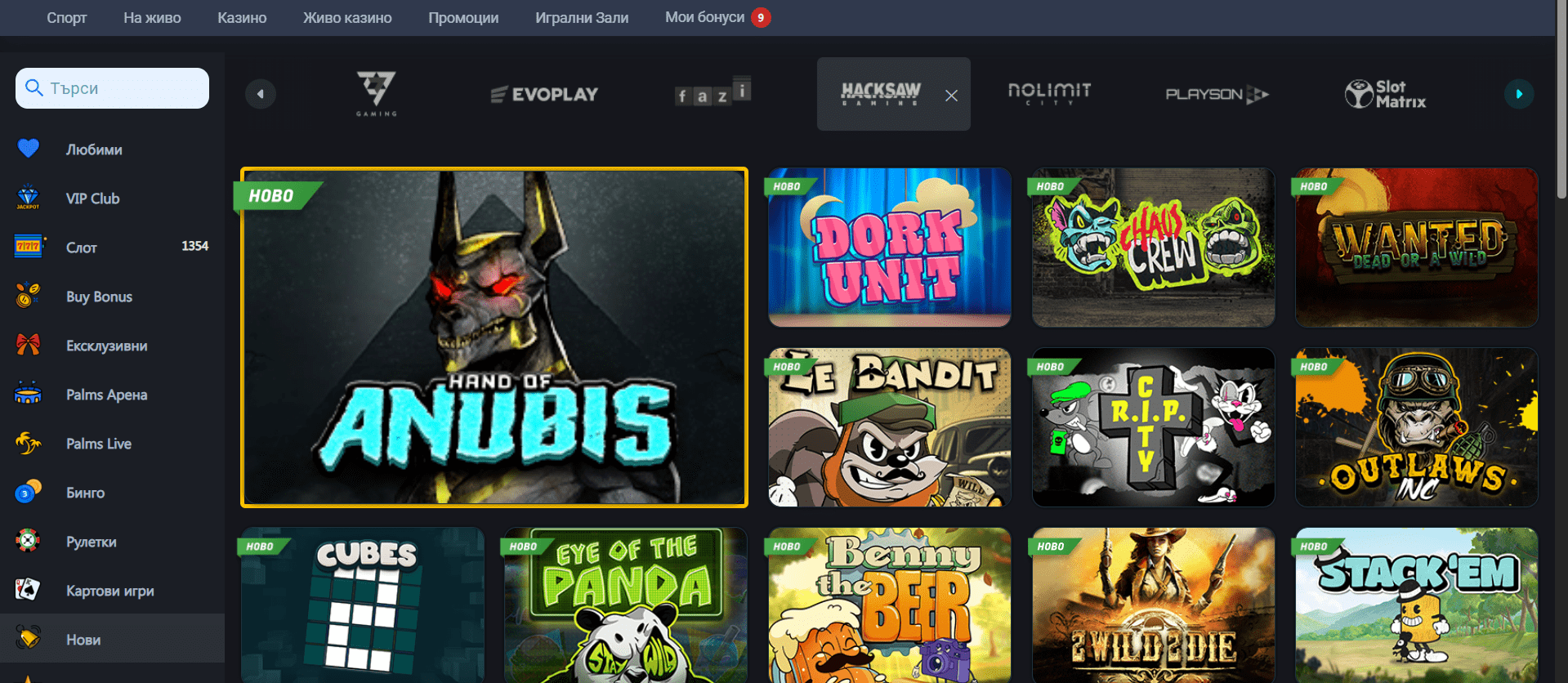 🆕 Сега в секцията „Казино“ ➡️ „Нови“ на palmsbet.com ще откриеш уникални заглавия от Hacksaw Gaming – един от най-популярните доставчици на слот игри!