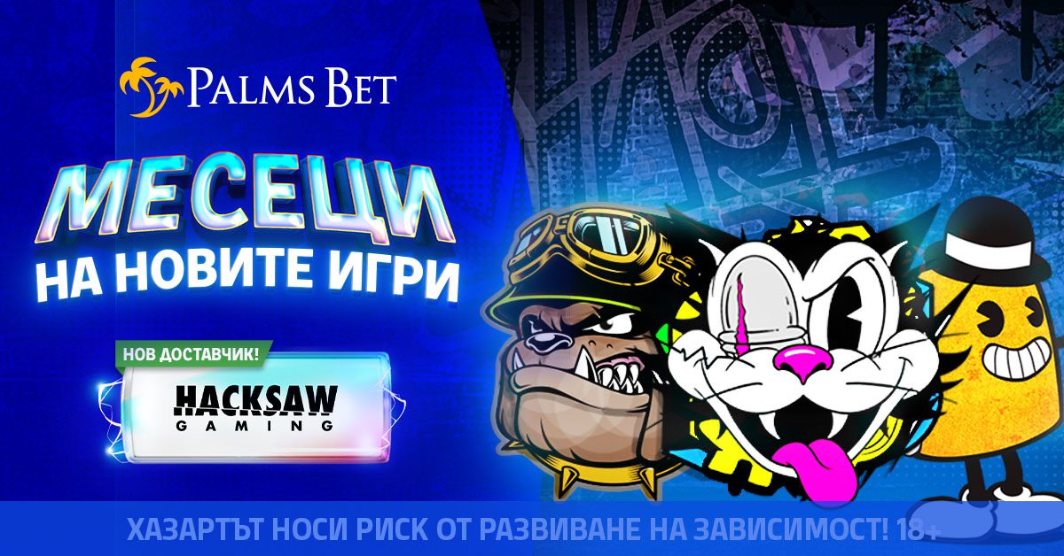 🆕 Сега в секцията „Казино“ ➡️ „Нови“ на palmsbet.com ще откриеш уникални заглавия от Hacksaw Gaming – един от най-популярните доставчици на слот игри!