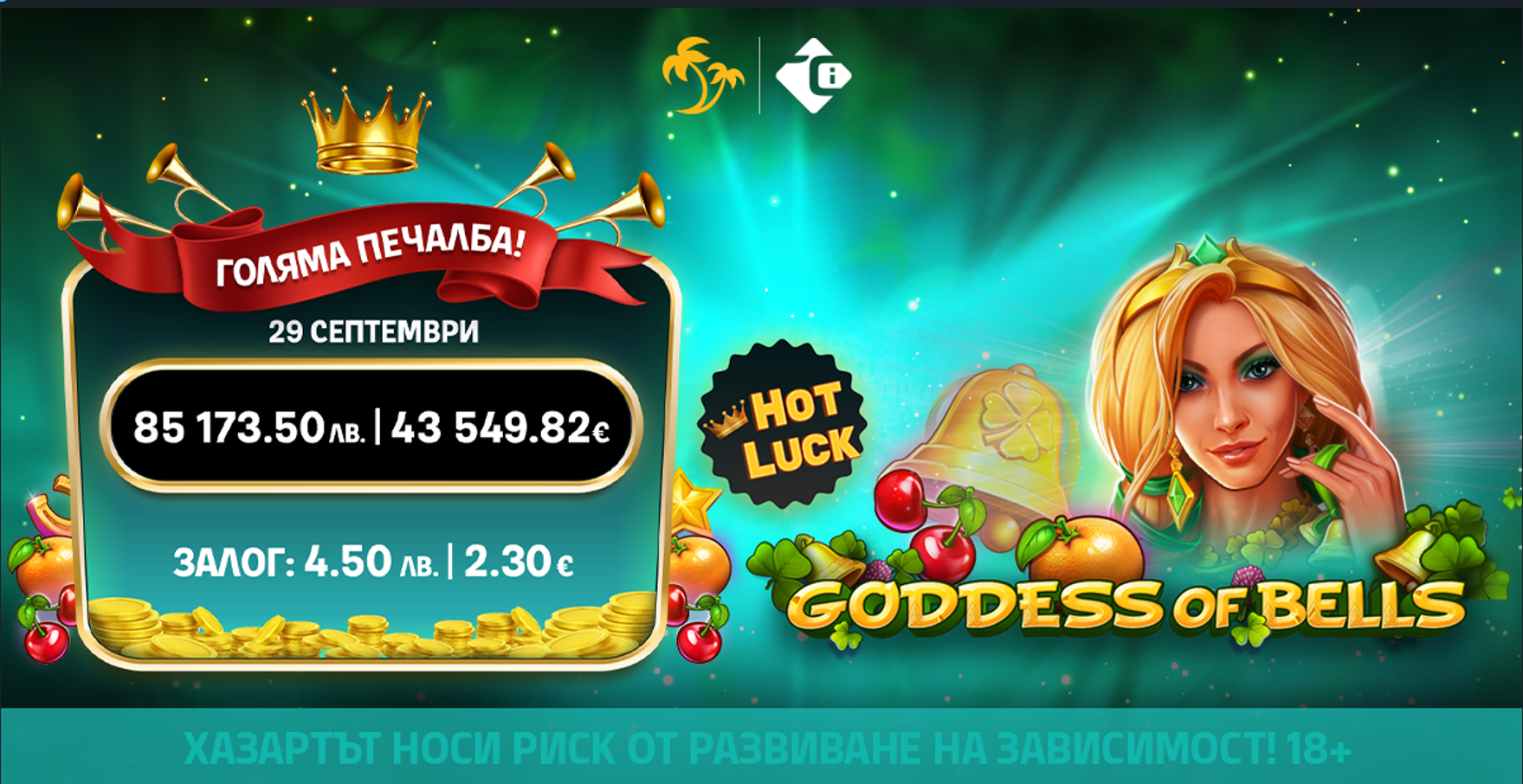 Начало Джакпоти Над 85 000 лв. Hot Luck Jackpot в онлайн казиното на Palms Bet!