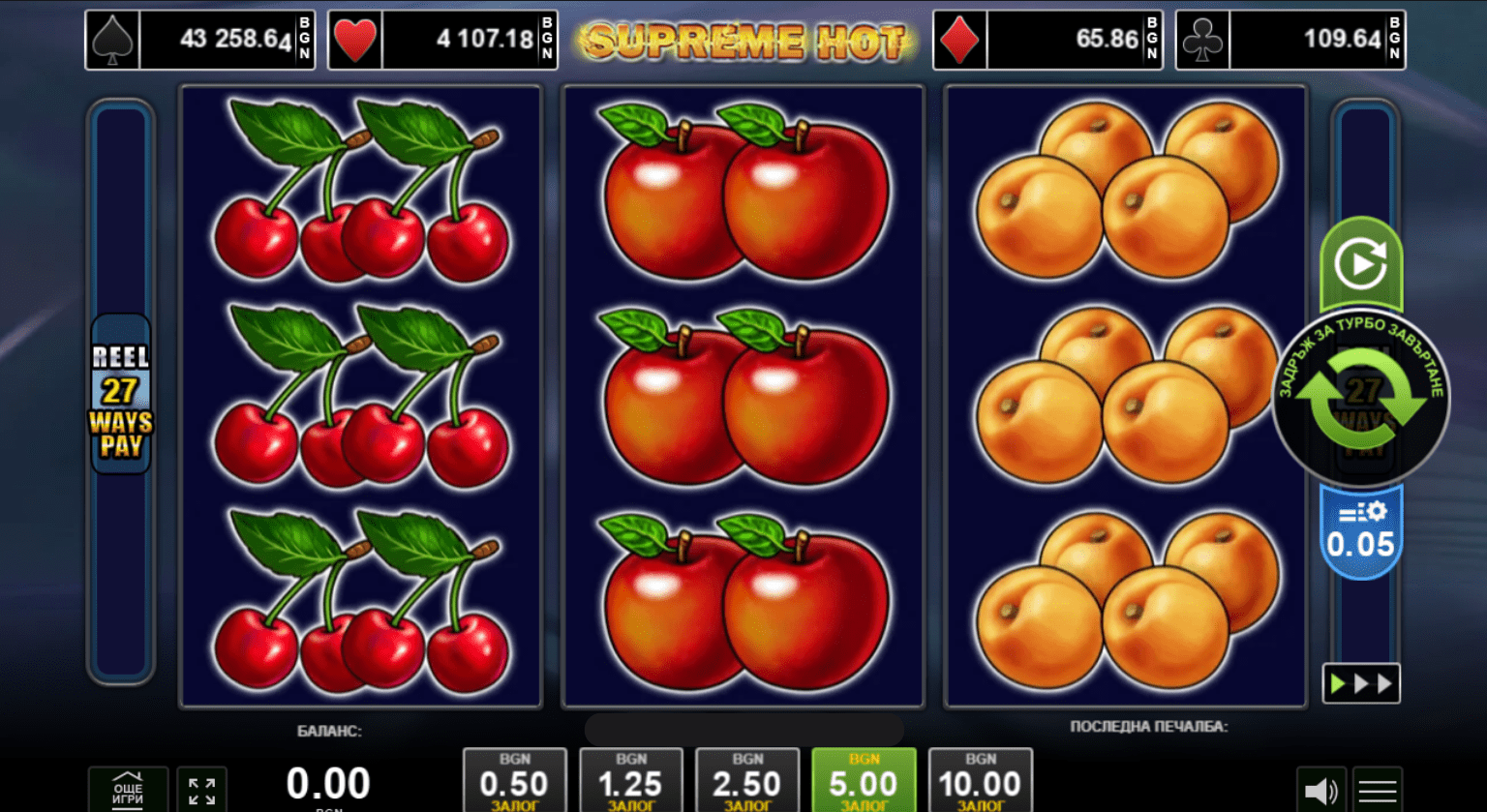🎰 Картите се показаха в добре познатата игра Supreme Hot от Amusnet.