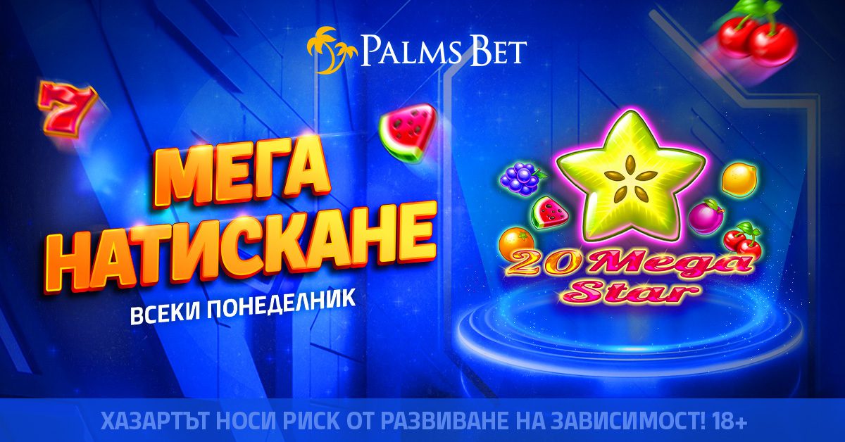 🌴 Palms Bet превръща понеделниците ти в истинско мега приключение с новата промоция „МЕГА НАТИСКАНЕ“!